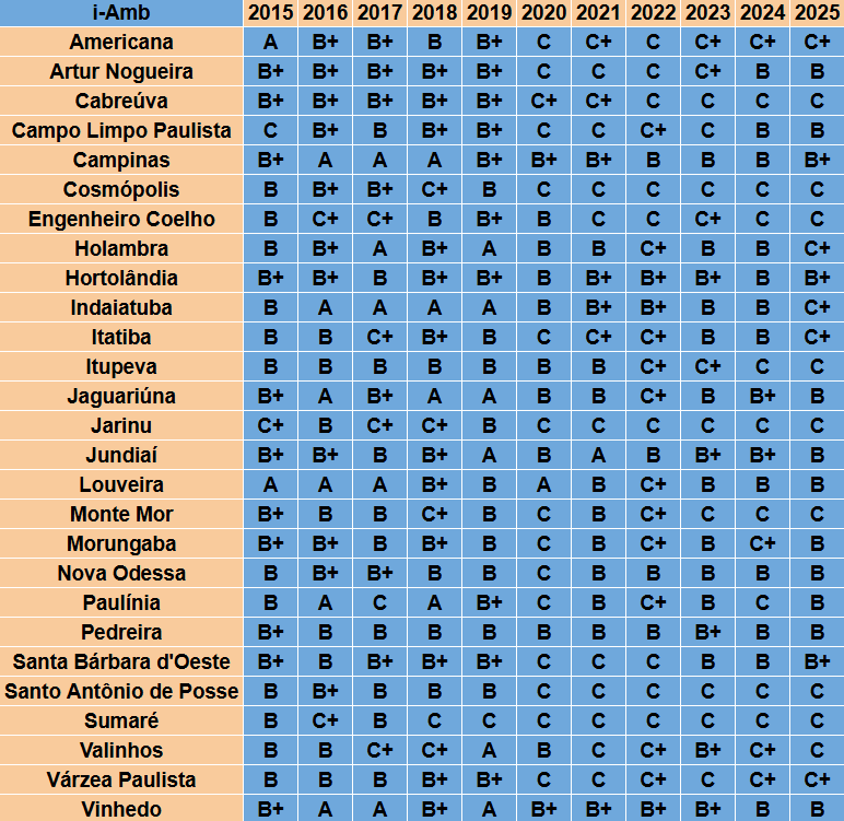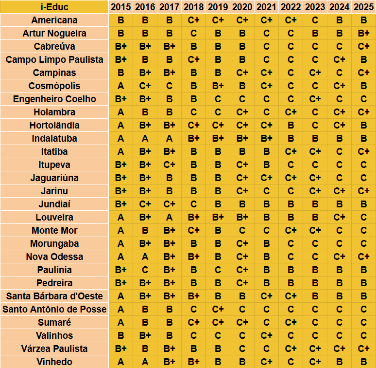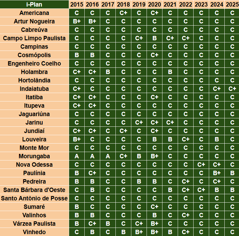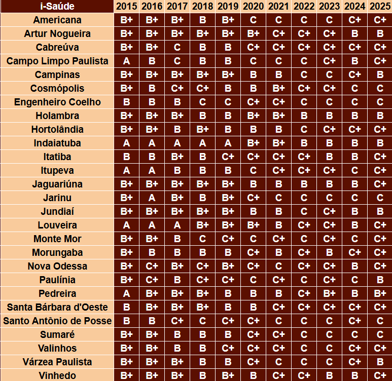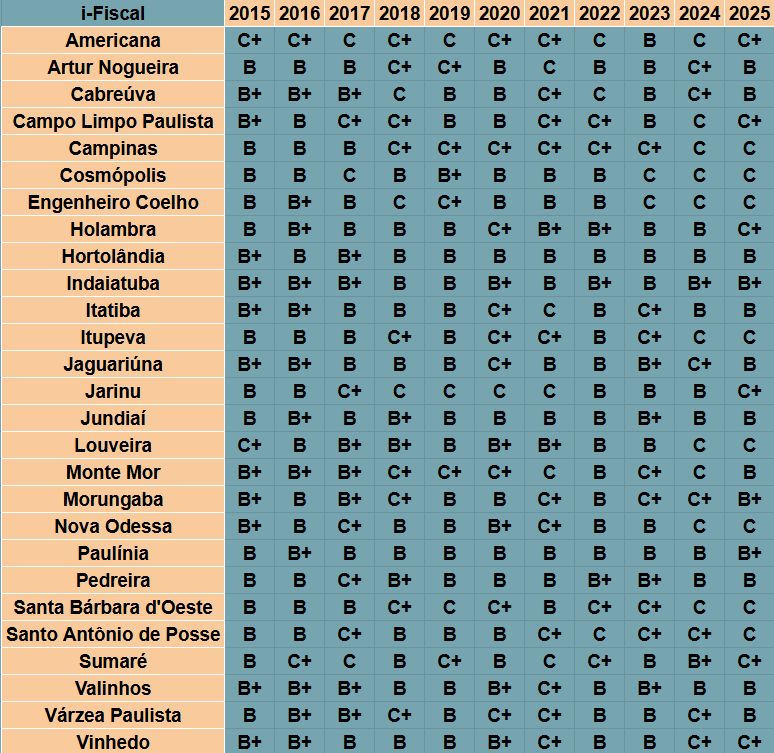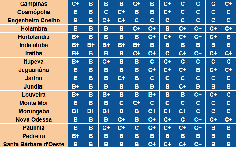 Segue, abaixo, tabela comparativa indicador por indicador das 27 cidades das Regiões de Campinas e Jundiaí: